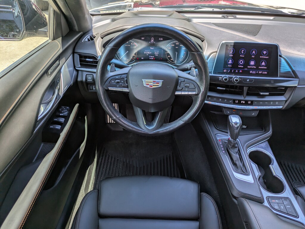 Vaden is pleased to offer this Black Raven 2021 Cadillac CT4 Sport with Jet Black With Jet Black Accents Artificial Leather... Beautifully equipped with Cold Weather Package (Heated Driver & Front Passenger Seats and Heated Steering Wheel), Interior Protection Package (LPO) (All-Weather Cargo Mat (LPO) and All-Weather Floor Mats), Navigation & Bose Premium Audio Package (Wireless Phone Charging), Preferred Equipment Group 1SE (4-Wheel Disc Antilock Brakes, Automatic Emergency Braking, Dual Digital Driver Information Center Display, Electronic Cruise Control w/Set & Resume Speed, LED Reflective Windshield Alert, and Rear Park Assist), Radio: Cadillac User Experience w/Embedded Nav (Bose Premium Surround Sound 14-Speaker System and SiriusXM w/360L), 4-Wheel Disc Brakes, 8 Speakers, ABS brakes, Air Conditioning, Alloy wheels, AM/FM radio: SiriusXM, Anti-whiplash front head restraints, Apple CarPlay/Android Auto, Auto-dimming door mirrors, Auto-dimming Rear-View mirror, Automatic Stop/Start w/Disable, Automatic temperature control, Brake assist, Brembo V Performance Front Brakes, Bumpers: body-color, Compass, Delay-off headlights, Driver 4-Way Power Lumbar Seat Adjuster, Driver door bin, Driver Seat Manual Cushion Length Adjustment, Driver Seat Power Seatback Bolster Adjustment, Driver vanity mirror, Dual front impact airbags, Dual front side impact airbags, Electronic Stability Control, Emergency communication system: OnStar and Cadillac connected services capable, Exterior Parking Camera Rear, Four wheel independent suspension, Front anti-roll bar, Front Bucket Seats, Front Center Armrest, Front dual zone A/C, Front Passenger 4-Way Power Lumbar Seat Adjuster, Front Passenger Seat Manual Cushion Length Adjmt, Front reading lights, Front Seat Passenger Power Seatback Bolster Adjmt, Fully automatic headlights, Garage door transmitter, HD Radio, Heated door mirrors, Illuminated entry, Knee airbag, Leather Shift Knob, Leather steering wheel, Leatherette Seats, Low tire pressure warning, Memory seat, Memory Settings, Occupant sensing airbag, Outside temperature display, Overhead airbag, Overhead console, Panic alarm, Passenger door bin, Passenger vanity mirror, Power door mirrors, Power driver seat, Power passenger seat, Power steering, Power Sunroof w/Express-Open & Venting, Power windows, Premium 8-Speaker Audio System Feature, Radio data system, Radio: Cadillac User Experience, Rain sensing wipers, Rear anti-roll bar, Rear reading lights, Rear seat center armrest, Rear window defroster, Red Calipers, Remote keyless entry, Speed control, Speed-sensing steering, Split folding rear seat, Spoiler, Sport steering wheel, Steering wheel mounted audio controls, Tachometer, Telescoping steering wheel, Tilt steering wheel, Traction control, Trip computer, Turn signal indicator mirrors, Variably intermittent wipers, Voltmeter, Wheels: 18" Alloy w/Pearl Nickel Finish, and Wheels: 18" Alloy w/Satin Graphite Finish!