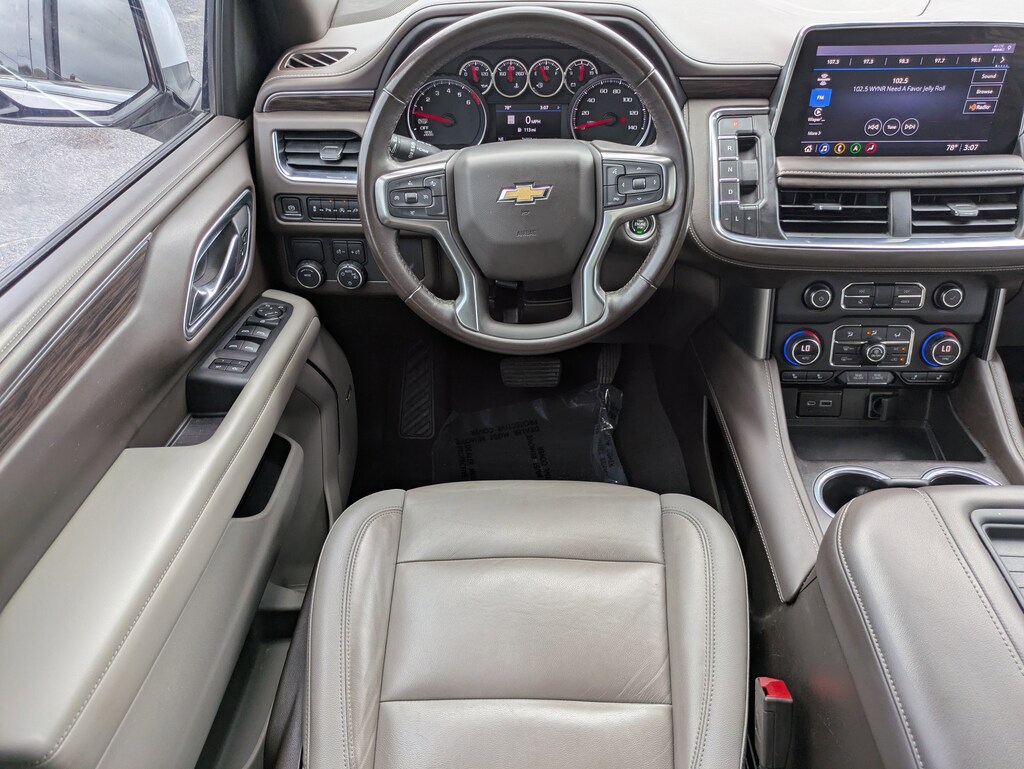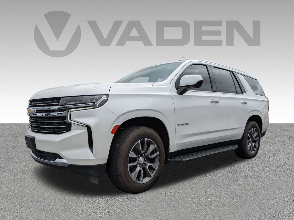 Vaden is pleased to offer this Iridescent Pearl Tricoat 2021 Chevrolet Tahoe LT with Gideon/Very Dark Atmosphere Leather... Beautifully equipped with License Plate Front Mounting Package, Preferred Equipment Group 1LT (1st & 2nd Row Color-Keyed Carpeted Floor Mats, 2 USB Data Ports, Auto-Dimming Inside Rear-View Mirror, Bright Front & Rear Door Sill Plates, Color-Keyed Carpeting Floor Covering, Driver & Front Outboard Passenger Airbags, Floor Console w/Storage Area, Hands-Free Rear Power Programmable Liftgate, HD Radio, Infotainment Display, Leather-Wrapped Steering Wheel, LED Daytime Running Lamps, Memory Settings for Driver, Remote Start, SiriusXM Radio w/360L, and Universal Home Remote), Rear Media & Nav Package (Radio: Chevrolet Infotainment 3 Premium System, Rear Seat Media System, and SiriusXM NavTraffic), Gideon/Very Dark Atmosphere Leather, 10-Way Power Driver & Passenger Seat Adjusters, 3.23 Rear Axle Ratio, 3rd row seats: split-bench, 4-Wheel Disc Brakes, 9 Speakers, ABS brakes, Air Conditioning, Alloy wheels, AM/FM radio: SiriusXM with 360L, Apple CarPlay/Android Auto, Auto High-beam Headlights, Auto-dimming Rear-View mirror, Automatic temperature control, Bose 9-Speaker Stereo Audio System Feature, Brake assist, Bumpers: body-color, Compass, Delay-off headlights, Driver door bin, Driver vanity mirror, Dual front impact airbags, Dual front side impact airbags, Dual-Pane Power Panoramic Sunroof, Electronic Stability Control, Emergency communication system: OnStar and Chevrolet connected services capable, Four wheel independent suspension, Front anti-roll bar, Front Bucket Seats, Front Center Armrest, Front dual zone A/C, Front High-Back Reclining Bucket Seats, Front reading lights, Fully automatic headlights, Garage door transmitter, Heated door mirrors, Heated Driver & Front Passenger Seats, Heated front seats, Illuminated entry, Leather Seat Trim, Leather steering wheel, Low tire pressure warning, Memory seat, Occupant sensing airbag, Outside temperature display, Overhead airbag, Overhead console, Panic alarm, Passenger door bin, Passenger vanity mirror, Power door mirrors, Power driver seat, Power Liftgate, Power passenger seat, Power steering, Power windows, Premium audio system: Chevrolet Infotainment 3, Premium Smooth Ride Suspension, Radio: Chevrolet Infotainment 3 Plus System, Rain sensing wipers, Rear air conditioning, Rear anti-roll bar, Rear reading lights, Rear seat center armrest, Rear window defroster, Rear window wiper, Remote keyless entry, Roof rack: rails only, Security system, Speed control, Speed-sensing steering, Split folding rear seat, Spoiler, Steering wheel mounted audio controls, Tachometer, Telescoping steering wheel, Tilt steering wheel, Traction control, Trip computer, Variably intermittent wipers, Voltmeter, Wheels: 18" x 8.5" Bright Silver Painted Aluminum, and Wheels: 20" x 9" Painted Aluminum! Approved customer communicated additions (repairing minor cosmetic flaw, added accessories, etc.) Prior to delivery will be subject to additional charges. ***All of Our Vaden New Car Pricing is Transparent, the price you see is the price you pay!!**** POWER PACKAGE, Gideon/Very Dark Atmosphere Leather.