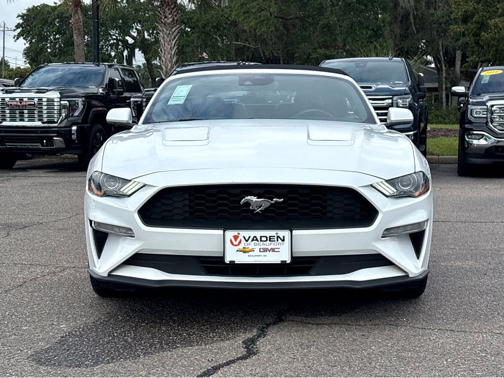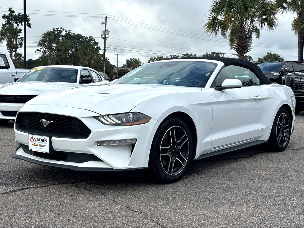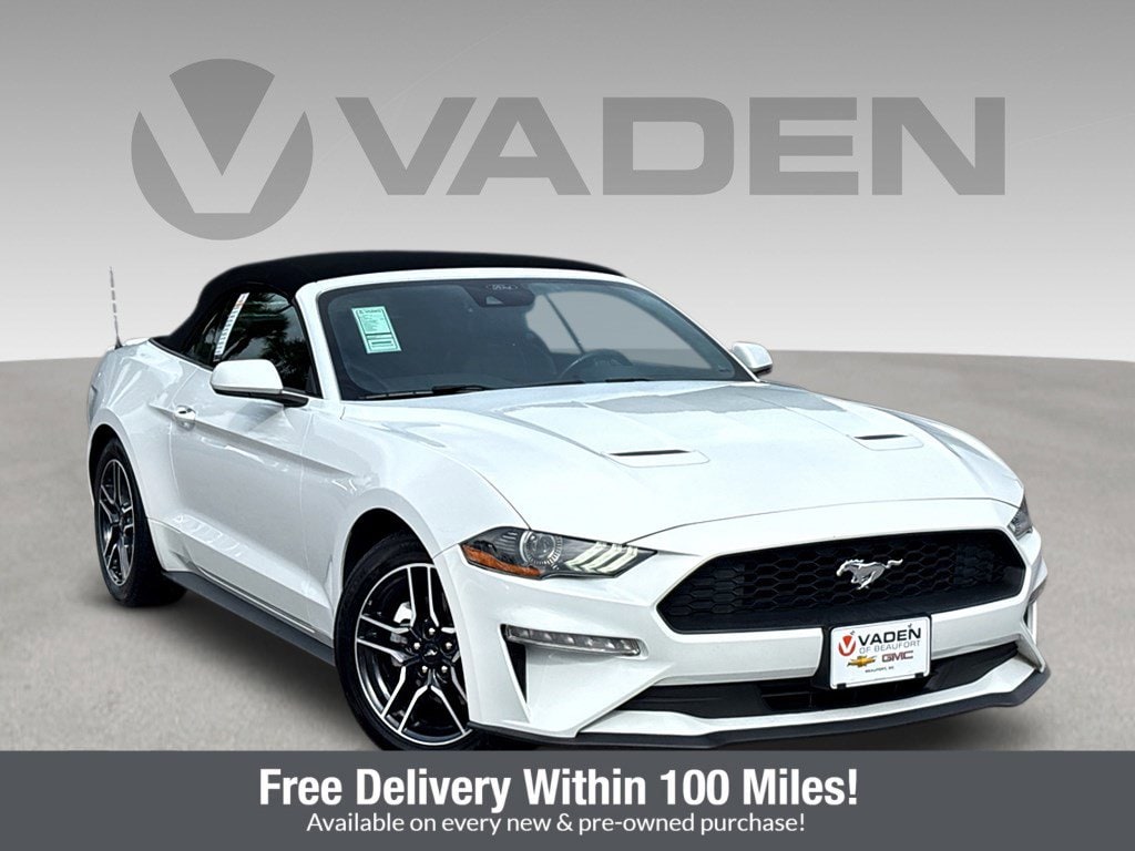 WWW.VADENOFBEAUFORT.COM.Vaden is pleased to offer this Oxford White 2022 Ford Mustang EcoBoost Premium with Ebony Premium Synthetic... Beautifully equipped with Equipment Group 200A, 4-Wheel Disc Brakes, 9 Speakers, ABS brakes, ActiveX Bucket Seats, Air Conditioning, Alloy wheels, AM/FM radio: SiriusXM, AM/FM Stereo, Auto High-beam Headlights, Auto-dimming Rear-View mirror, Automatic temperature control, Brake assist, Bumpers: body-color, Climate Controlled Heated/Cooled Front Seats, Compass, Convertible roof lining, Delay-off headlights, Driver door bin, Driver vanity mirror, Dual front impact airbags, Dual front side impact airbags, Electronic Stability Control, Emergency communication system: 911 Assist, Exterior Parking Camera Rear, Four wheel independent suspension, Front anti-roll bar, Front Bucket Seats, Front Center Armrest, Front dual zone A/C, Front reading lights, Fully automatic headlights, Glass rear window, Heated door mirrors, Heated front seats, Illuminated entry, Knee airbag, Leather Shift Knob, Low tire pressure warning, Occupant sensing airbag, Outside temperature display, Overhead console, Panic alarm, Passenger door bin, Passenger vanity mirror, Power convertible roof, Power door mirrors, Power driver seat, Power passenger seat, Power steering, Power windows, Radio data system, Rain sensing wipers, Rear anti-roll bar, Rear Parking Sensors, Rear window defroster, Remote keyless entry, Security system, SiriusXM Radio, Speed control, Speed-sensing steering, Speed-Sensitive Wipers, Spoiler, Steering wheel mounted audio controls, SYNC 3 Communications & Entertainment System, Tachometer, Telescoping steering wheel, Tilt steering wheel, Traction control, Trip computer, Variably intermittent wipers, Ventilated front seats, Voltmeter, and Wheels: 18' x 8' Machined-Face Aluminum!2022 Ford Mustang EcoBoost Premium