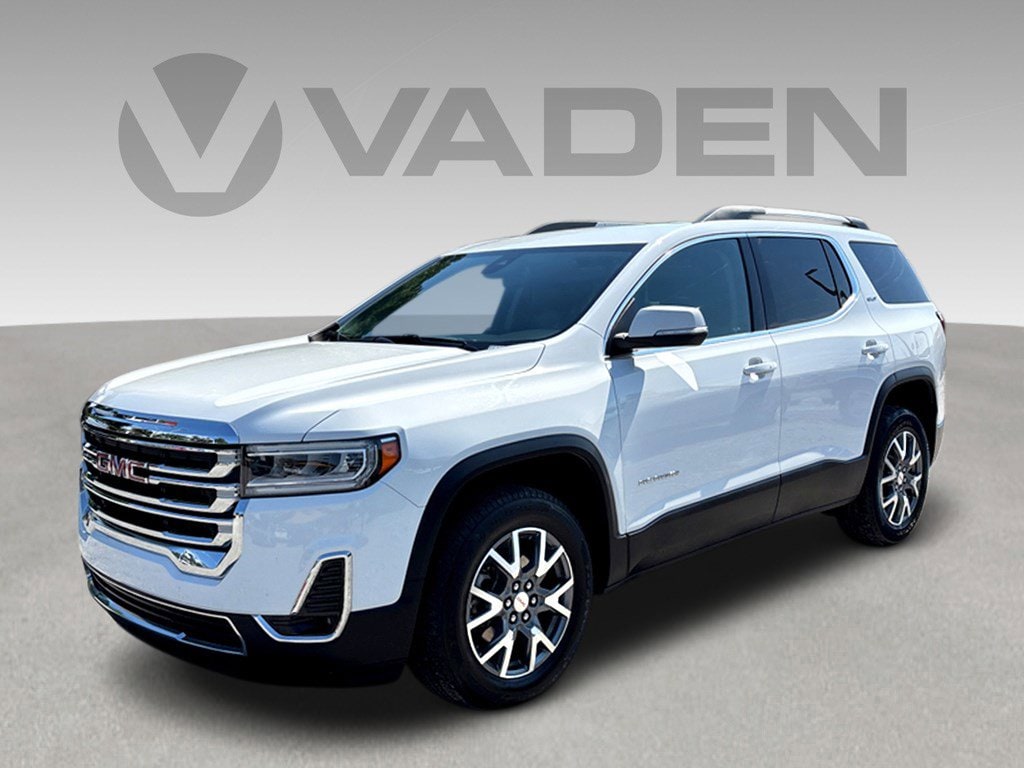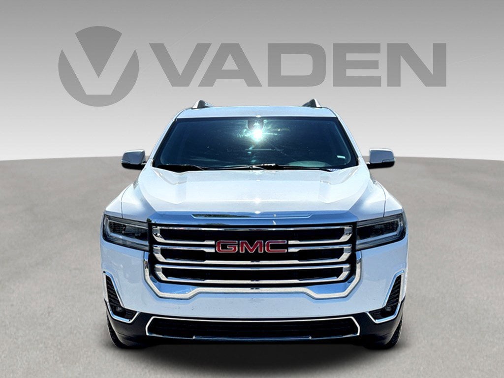 Vaden SLT in Summit White, Beautifully equipped with Preferred Equipment Group 4SA, FWD, Black Leather, 18' Aluminum Wheels, 3.47 Final Drive Axle Ratio, 3rd row seats: split-bench, 4-Way Manual Passenger Seat Adjuster, 4-Wheel Disc Brakes, 6-Passenger (2-2-2 Seating Configuration), 8 Speakers, 8-Way Power Driver Seat Adjuster, ABS brakes, Air Conditioning, Alloy wheels, AM/FM radio: SiriusXM with 360L, Apple CarPlay/Android Auto, Auto High-beam Headlights, Auto-dimming Rear-View mirror, Automatic temperature control, Bose Premium 8-Speaker Audio System Feature, Brake assist, Bumpers: body-color, Compass, Delay-off headlights, Deleted 3 Years of OnStar & Connected Services Plan, Driver door bin, Driver vanity mirror, Dual front impact airbags, Dual front side impact airbags, Electronic Stability Control, Emergency communication system: OnStar and GMC connected services capable, Four wheel independent suspension, Front anti-roll bar, Front Bucket Seats, Front Center Armrest, Front dual zone A/C, Front fog lights, Front reading lights, Fully automatic headlights, Garage door transmitter, Heated door mirrors, Heated Driver & Front Passenger Seats, Heated front seats, Illuminated entry, Knee airbag, Low tire pressure warning, Navigation System, Not Equipped w/Front & Rear Park Assist (060), Occupant sensing airbag, Outside temperature display, Overhead airbag, Overhead console, Panic alarm, Passenger door bin, Passenger vanity mirror, Perforated Leather-Appointed Seat Trim, Power door mirrors, Power Driver Lumbar Control Seat Adjuster, Power driver seat, Power Liftgate, Power steering, Power windows, Radio data system, Radio: AM/FM 8' Diagonal Multi-Touch Navigation, Rear air conditioning, Rear anti-roll bar, Rear reading lights, Rear window defroster, Rear window wiper, Remote keyless entry, Security system, SiriusXM w/360L, Speed control, Speed-sensing steering, Spoiler, Steering wheel mounted audio controls, Tachometer, Telescoping steering wheel, Tilt steering wheel, Traction control, Trip computer, Turn signal indicator mirrors, Variably intermittent wipers, Voltmeter, and Wireless Apple CarPlay/Wireless Android Auto! FWD, Black Leather. 2023 GMC Acadia SLT.