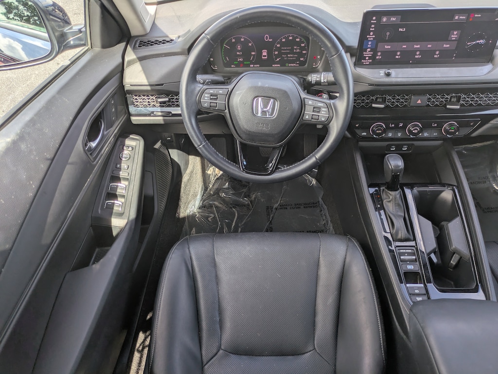Vaden is pleased to offer this Still Night Pearl 2023 Honda Accord Hybrid EX-L with Black Cloth... Beautifully equipped with 2.0L 16V DOHC, 4-Wheel Disc Brakes, 8 Speakers, ABS brakes, Adaptive Cruise Control: Adaptive Cruise Control (ACC) with Low-Speed Follow, Air Conditioning, Alloy wheels, AM/FM radio, Apple CarPlay/Android Auto, Auto High-beam Headlights, Auto-dimming Rear-View mirror, Automatic temperature control, Brake assist, Bumpers: body-color, Compass, Delay-off headlights, Driver door bin, Driver vanity mirror, Dual front impact airbags, Dual front side impact airbags, Electronic Stability Control, Emergency communication system: HondaLink, Exterior Parking Camera Rear, Four wheel independent suspension, Front anti-roll bar, Front Bucket Seats, Front Center Armrest, Front dual zone A/C, Front reading lights, Fully automatic headlights, Heated door mirrors, Heated Front Bucket Seats, Heated front seats, Illuminated entry, Knee airbag, Lane departure: Lane Keeping Assist System (LKAS) active, Leather Shift Knob, Leather steering wheel, Leather-Trimmed Seat Trim, Low tire pressure warning, Memory seat, Occupant sensing airbag, Outside temperature display, Overhead airbag, Overhead console, Panic alarm, Passenger door bin, Passenger vanity mirror, Power door mirrors, Power driver seat, Power moonroof, Power passenger seat, Power steering, Power windows, Radio data system, Radio: 180-Watt Audio System, Rear anti-roll bar, Rear reading lights, Rear seat center armrest, Rear side impact airbag, Rear window defroster, Remote keyless entry, Security system, Speed control, Speed-sensing steering, Speed-Sensitive Wipers, Split folding rear seat, Steering wheel mounted audio controls, Telescoping steering wheel, Tilt steering wheel, Traction control, Trip computer, Turn signal indicator mirrors, Variably intermittent wipers, and Wheels: 17" x 7.5J Pewter Gray! Approved customer communicated additions (repairing minor cosmetic flaw, added accessories, etc.) Prior to delivery will be subject to additional charges. ***All of Our Vaden New Car Pricing is Transparent, the price you see is the price you pay!!**** POWER PACKAGE, 2.0L 16V DOHC.
