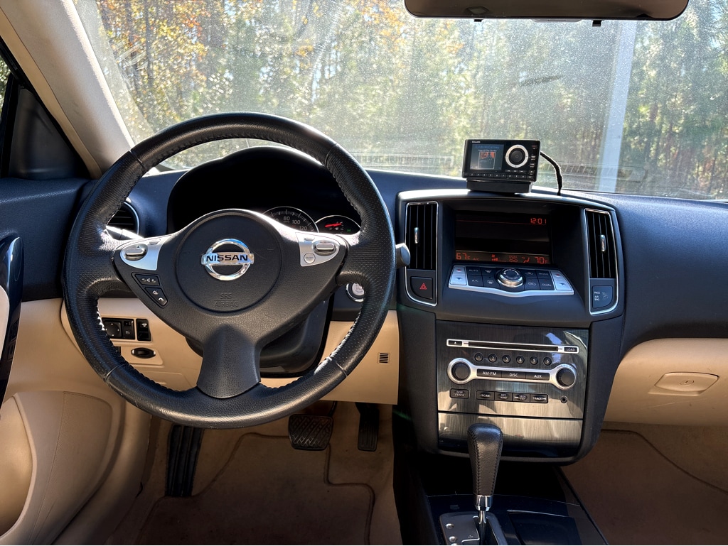 Vaden is pleased to offer 2013 Nissan Maxima 3.5 S in Pearl White Metallic, Beautifully equipped with all the essentials and then some! 18" Aluminum Alloy Wheels, 4-Wheel Disc Brakes, 8 Speakers, ABS brakes, Air Conditioning, Alloy wheels, AM/FM radio, Anti-whiplash front head restraints, Auto-dimming Rear-View mirror, Automatic temperature control, Brake assist, Bumpers: body-color, Carpeted Floor Mats/Trunk Mat (5-Piece Set), CD player, Cloth Seat Trim, Delay-off headlights, Driver door bin, Driver vanity mirror, Dual front impact airbags, Dual front side impact airbags, Electronic Stability Control, Four wheel independent suspension, Front anti-roll bar, Front Bucket Seats, Front Center Armrest w/Storage, Front dual zone A/C, Front reading lights, Fully automatic headlights, Illuminated entry, Illuminated Kick Plates, Leather Shift Knob, Leather steering wheel, Low tire pressure warning, Occupant sensing airbag, Outside temperature display, Overhead airbag, Overhead console, Panic alarm, Passenger door bin, Passenger vanity mirror, Power door mirrors, Power driver seat, Power moonroof, Power passenger seat, Power steering, Power windows, Radio: AM/FM/CD6/MP3 Audio System, Rear anti-roll bar, Rear reading lights, Rear seat center armrest, Rear window defroster, Remote keyless entry, Security system, Speed control, Speed-sensing steering, Speed-Sensitive Wipers, Splash Guards, Split folding rear seat, Steering wheel mounted audio controls, Tachometer, Telescoping steering wheel, Tilt steering wheel, Traction control, Trip computer, Trunk Sub-Floor Organizer w/First Aid & Emerg Kit, and Variably intermittent wipers.