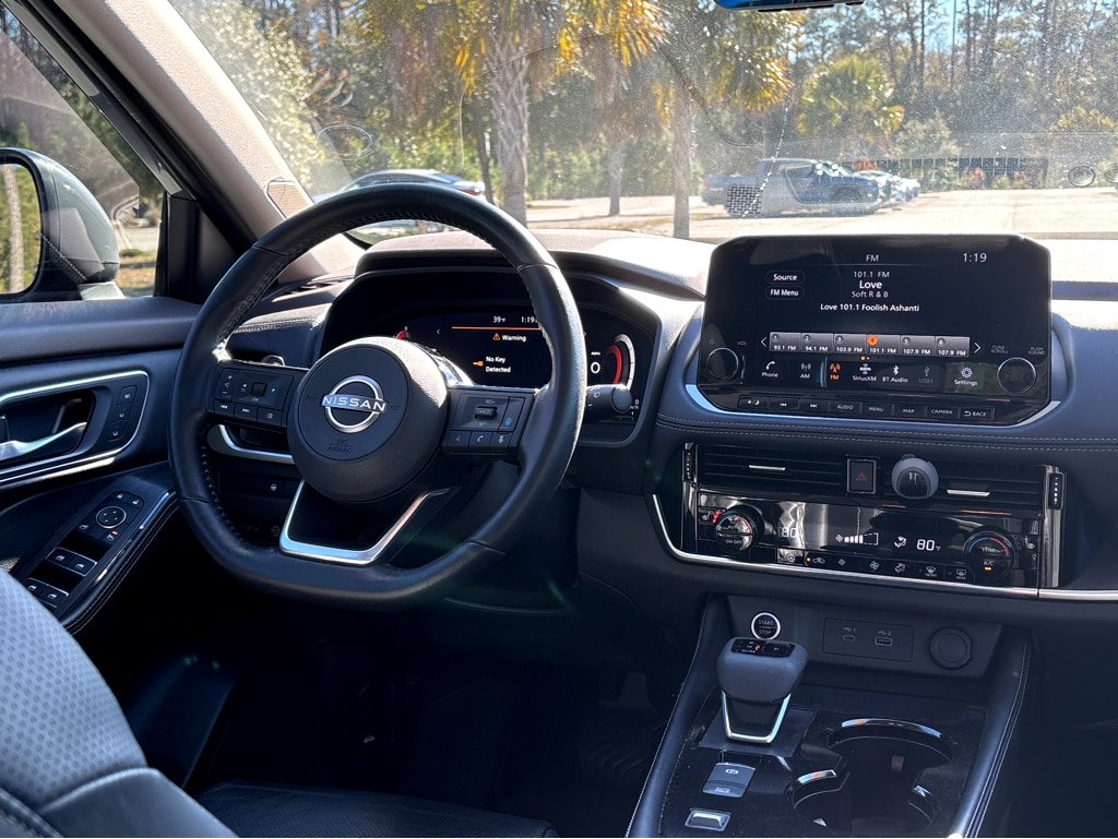 Vaden is pleased to offer 2023 Nissan Rogue Platinum in Boulder Gray Pearl, Beautifully equipped with all the essentials and then some! 10 Speakers, 19" Aluminum Alloy Wheels, 4-Wheel Disc Brakes, 5.604 Axle Ratio, ABS brakes, Air Conditioning, Alloy wheels, AM/FM radio: SiriusXM, Auto High-beam Headlights, Auto-dimming Rear-View mirror, Automatic temperature control, Black Splash Guards (Set of 4), Bose Premium Audio System, Brake assist, Bumpers: body-color, Chrome Rear Bumper Protector, Delay-off headlights, Driver door bin, Driver vanity mirror, Dual front impact airbags, Dual front side impact airbags, Electronic Stability Control, Emergency communication system: NissanConnect Services, First Aid Kit, Floor Mats w/2-Piece Cargo Area Protector, Four wheel independent suspension, Frameless Rearview Mirror w/Universal Remote, Front anti-roll bar, Front Bucket Seats, Front Center Armrest, Front dual zone A/C, Front reading lights, Fully automatic headlights, Heated door mirrors, Heated Front Bucket Seats, Heated front seats, Heated steering wheel, Illuminated entry, Illuminated Kick Plates, Knee airbag, Leather steering wheel, Low tire pressure warning, Memory seat, Navigation system: NissanConnect Navigation, NissanConnect featuring Apple CarPlay and Android Auto, Occupant sensing airbag, Outside temperature display, Overhead airbag, Overhead console, Panic alarm, Passenger door bin, Passenger vanity mirror, Power door mirrors, Power driver seat, Power Liftgate, Power moonroof, Power passenger seat, Power steering, Power windows, Quilted Semi-Aniline Leather Seat Trim, Radio data system, Radio: AM/FM NissanConnect w/Navigation, Rear anti-roll bar, Rear reading lights, Rear seat center armrest, Rear side impact airbag, Rear window defroster, Rear window wiper, Remote keyless entry, Security system, Speed control, Speed-Sensitive Wipers, Split folding rear seat, Spoiler, Steering wheel mounted audio controls, Tachometer, Telescoping steering wheel, Tilt steering wheel, Traction control, Trip computer, Turn signal indicator mirrors, and Variably intermittent wipers.