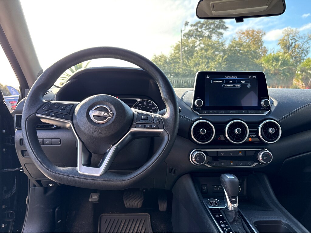 Vaden is pleased to offer this Super Black 2024 Nissan Sentra SV with Charcoal Cloth... Beautifully equipped with CVT with Xtronic, Charcoal Cloth, 16" Alloy Wheels, 4-Wheel Disc Brakes, 6 Speakers, ABS brakes, Air Conditioning, Alloy wheels, AM/FM radio: SiriusXM, Auto High-beam Headlights, Blind Spot Warning, Body Colored Splash Guards (4-Piece), Brake assist, Bumpers: body-color, Carpeted Floor Mats w/Trunk Mat, Clear Rear Bumper Protector, Delay-off headlights, Door Sill Plates, Driver door bin, Driver vanity mirror, Dual front impact airbags, Dual front side impact airbags, Electronic Stability Control, Four wheel independent suspension, Front anti-roll bar, Front Bucket Seats, Front Center Armrest, Front reading lights, Fully automatic headlights, Illuminated entry, Knee airbag, Leather steering wheel, Low tire pressure warning, NissanConnect featuring Apple CarPlay and Android Auto, Occupant sensing airbag, Outside temperature display, Overhead airbag, Overhead console, Panic alarm, Passenger door bin, Passenger vanity mirror, Power door mirrors, Power steering, Power windows, Radio data system, Radio: AM/FM w/RDS/MP3/Aux-In, Rear anti-roll bar, Rear Parking Sensors, Rear side impact airbag, Rear window defroster, Remote keyless entry, Security system, Speed control, Speed-sensing steering, Split folding rear seat, Steering wheel mounted audio controls, Tachometer, Technical Spec Change 2, Telescoping steering wheel, Tilt steering wheel, Traction control, Trip computer, Upgraded Cloth Seat Trim, and Variably intermittent wipers! REMAINDER OF FACTORY WARRANTY, ONE OWNER, PUSH BUTTON STARTER, REMOTE KEYLESS ENTRY, BLUETOOTH, BACKUP CAMERA, POWER MIRROR PACKAGE, PREMIUM WHEELS, CVT with Xtronic, Charcoal Cloth.