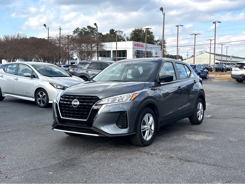 Vaden is pleased to offer this Gun Metallic 2025 Nissan Kicks Play S with Charcoal Cloth... Beautifully equipped with 6 Speakers, ABS brakes, Air Conditioning, AM/FM radio, Auto High-beam Headlights, Blind Spot Warning, Brake assist, Driver door bin, Driver vanity mirror, Driver's Seat Mounted Armrest, Dual front impact airbags, Dual front side impact airbags, Electronic Stability Control, Front anti-roll bar, Front Bucket Seats, Front reading lights, Front wheel independent suspension, Fully automatic headlights, Illuminated entry, Knee airbag, Low tire pressure warning, Occupant sensing airbag, Outside temperature display, Overhead airbag, Panic alarm, Passenger door bin, Passenger vanity mirror, Power door mirrors, Power steering, Power windows, Radio data system, Rear Parking Sensors, Rear reading lights, Rear side impact airbag, Rear window defroster, Rear window wiper, Remote keyless entry, Speed control, Split folding rear seat, Sport steering wheel, Steering wheel mounted audio controls, Tachometer, Telescoping steering wheel, Tilt steering wheel, Traction control, Trip computer, and Variably intermittent wipers! REMAINDER OF FACTORY WARRANTY, ONE OWNER, CLEAN CARFAX HISTORY, PUSH BUTTON STARTER, REMOTE KEYLESS ENTRY, BLUETOOTH, BACKUP CAMERA, POWER MIRROR PACKAGE.