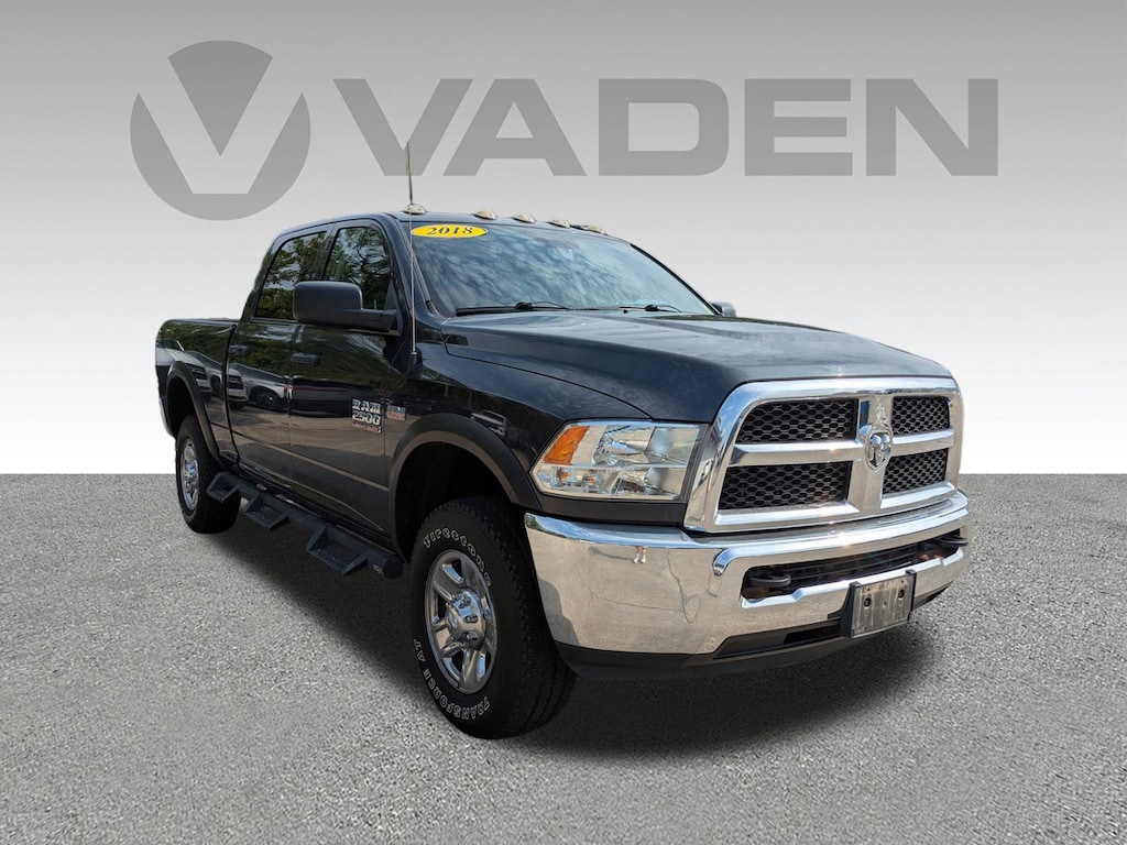 Vaden is pleased to offer this Maximum Steel Metallic Clearcoat 2018 Ram 2500 Tradesman with Black Cloth... Beautifully equipped with Chrome Appearance Group (Bright Front Bumper, Bright Grille, Bright Rear Bumper, and Wheels: 18" x 8.0" Steel Chrome Clad), Off Road Package (Black Wheel Flares, Front Performance Tuned Shock Absorbers, Offroad Decal, Rear Performance Tuned Shock Absorbers, and Tow Hooks), Popular Equipment Group (1-Yr SiriusXM Radio Service, Carpet Floor Covering, For More Info, Call 800-643-2112, Front & Rear Floor Mats, Remote Keyless Entry, and SiriusXM Satellite Radio), Quick Order Package 22A Tradesman (Front Armrest w/Cupholders), Snow Chief Group (Anti-Spin Differential Rear Axle, Clearance Lamps, and I/P Mounted Auxiliary Switches), 17" x 7.5" Steel Styled Wheels, 220 Amp Alternator, 3.73 Axle Ratio, 4-Wheel Disc Brakes, 40/20/40 Split Bench Seat, 6 Speakers, ABS brakes, Air Conditioning, AM/FM radio, Auto-dimming Rear-View mirror, Black Exterior Mirrors, Brake assist, Center Hub, Delay-off headlights, Driver door bin, Dual front impact airbags, Dual front side impact airbags, Electronic Stability Control, Electronically Controlled Throttle, Exterior Mirrors w/Heating Element, Front anti-roll bar, Front Center Armrest, Fully automatic headlights, Heated door mirrors, Heavy Duty Vinyl 40/20/40 Split Bench Seat, Hemi Badge, Locking Tailgate, Low tire pressure warning, Manual Adjust Seats, Media Hub (USB, AUX), Next Generation Engine Controller, Occupant sensing airbag, Overhead airbag, ParkView Rear Back-Up Camera, Passenger door bin, Power door mirrors, Power steering, Power windows, Radio data system, Radio: 3.0, Rear Folding Seat, Rear step bumper, Speed control, Spray In Bedliner, Tachometer, Tilt steering wheel, Tip Start, Traction control, Variably intermittent wipers, Vendor Painted Cargo Box Tracking, and Voltmeter! Approved customer communicated additions (repairing minor cosmetic flaw, added accessories, etc.) Prior to delivery will be subject to additional charges. ***All of Our Vaden New Car Pricing is Transparent, the price you see is the price you pay!!****