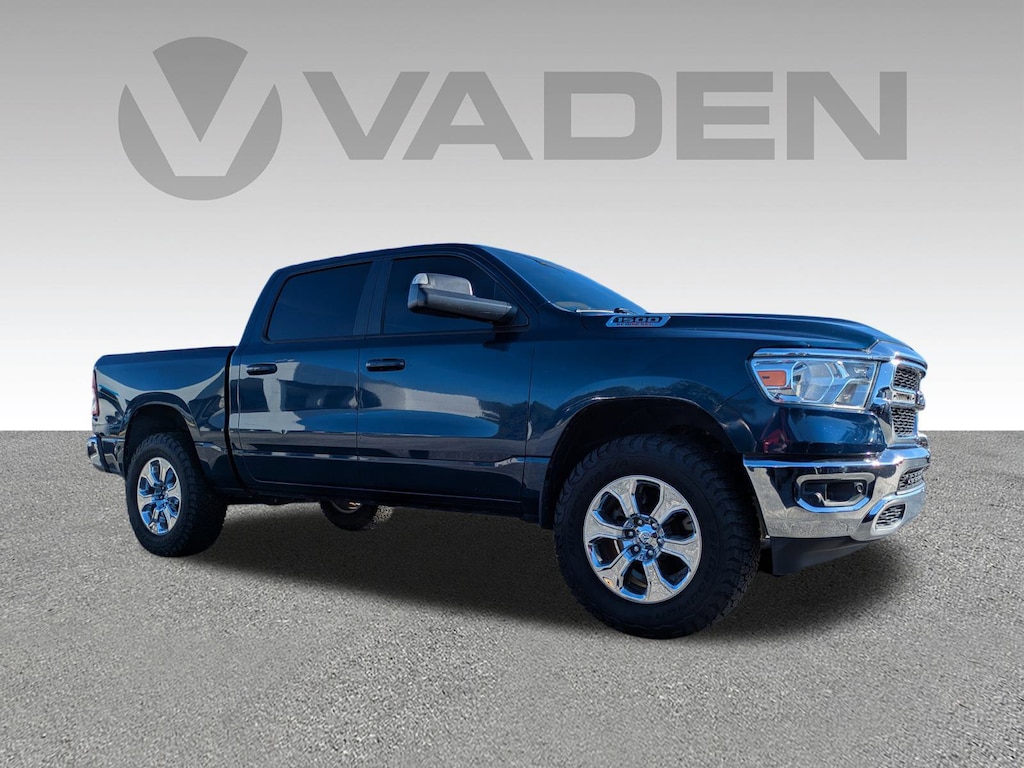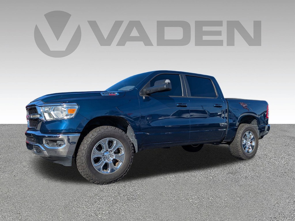 Vaden is pleased to offer this Patriot Blue Pearlcoat 2022 Ram 1500 Big Horn/Lone Star with Diesel Gray/Black Cloth... Beautifully equipped with Bed Utility Group (MOPAR 4 Adjustable Cargo Tie-Down Hooks, MOPAR Deployable Bed Step, MOPAR Spray In Bedliner, and Pick-Up Box Lighting), Big Horn Level 2 Equipment Group (115V Auxiliary Power Outlet, 115V Auxiliary Rear Power Outlet, 2nd Row In Floor Storage Bins, 400W Inverter, 4G LTE Wi-Fi Hot Spot, 8.4" Touchscreen Display, Air Conditioning ATC w/Dual Zone Control, Apple CarPlay, Auto-Dimming Exterior Driver Mirror, Auto-Dimming Rear-View Mirror, Black Exterior Mirrors, Black Premium Power Mirrors, Bluetooth Handsfree Phone & Audio, Class IV Receiver Hitch, Cluster 7.0" TFT Color Display, Connectivity - US/Canada, Convex Wide-Angle Mirror Insert, Exterior Mirrors Courtesy Lamps, Exterior Mirrors w/Heating Element, Exterior Mirrors w/Supplemental Signals, For Details, Visit DriveUconnect.com, Global Telematics Box Module (TBM), Glove Box Lamp, Google Android Auto, GPS Antenna Input, Heated Front Seats, Heated Steering Wheel, Integrated Center Stack Radio, Media Hub w/2 Charge Only USBs, ParkSense Front/Rear Park Assist w/Stop, Power 2-Way Driver Lumbar Adjust, Power 8-Way Driver Seat, Power Adjustable Pedals, Power-Folding Mirrors, Radio: Uconnect 5 W w/8.4" Display, Rear Dome w/On/Off Switch Lamp, Rear Power Sliding Window, Rear Window Defroster, Remote Start System, Security Alarm, SiriusXM Radio Service, SiriusXM Satellite Radio, Sun Visors w/Illuminated Vanity Mirrors, Universal Garage Door Opener, and USB Host Flip), Level 1 Safety Group (Advanced Brake Assist, Cluster 3.5" TFT Color Display, Full Speed Forward Collision Warning Plus, Lane Keep Assist, and Pedestrian Emergency Braking), Quick Order Package 28Z Big Horn (Big Horn Badge and Thermal Rear Axle), 3 Rear Seat Head Restraints, 3.21 Rear Axle Ratio, 33 Gallon Fuel Tank, 4 Way Front Headrests, 4-Wheel Disc Brakes, 48V Belt Starter Generator, 6 Speakers, 9 Amplified Speakers w/Subwoofer, ABS brakes, Air Conditioning, Alloy wheels, AM/FM radio, Anti-Spin Differential Rear Axle, Black Trailer Tow Power Mirrors, Brake assist, Bumpers: chrome, Cloth Bench Seat, Compass, Delay-off headlights, Dome Dual LED Reading Lamp, Driver door bin, Dual front impact airbags, Dual front side impact airbags, Dual-Pane Panoramic Sunroof, Electronic Stability Control, Emergency communication system: SiriusXM Guardian, Exterior Parking Camera Rear, Front anti-roll bar, Front Center Armrest w/Storage, Front fog lights, Front reading lights, Front Seat Back Map Pockets, Front wheel independent suspension, Fully automatic headlights, Heated door mirrors, Illuminated entry, Integrated Voice Command w/Bluetooth, Leather steering wheel, Low tire pressure warning, MOPAR Front & Rear Rubber Floor Mats, Occupant sensing airbag, Outside temperature display, Overhead airbag, Overhead console, Overhead LED Lamps, Panic alarm, Passenger door bin, Passenger vanity mirror, Power door mirrors, Power steering, Power windows, Premium Overhead Console, Radio data system, Radio: Uconnect 3 w/5" Display, Rear 60/40 Folding Seat, Rear anti-roll bar, Rear seat center armrest, Rear step bumper, Rear Underseat Compartment Storage, Remote keyless entry, Speed control, Split folding rear seat, Steering wheel mounted audio controls, Tachometer, Telescoping steering wheel, Tilt steering wheel, Traction control, Trailer Brake Control, Trailer Tow Mirrors, Trip computer, Variably intermittent wipers, Voltmeter, Wheel to Wheel Side Steps, Wheels: 18" x 8" Cast-Aluminum Painted, and Wheels: 20" x 9" Aluminum Chrome Clad! Approved customer communicated additions (repairing minor cosmetic flaw, added accessories, etc.) prior to delivery will be subject to additional charges. ***All of Our Vaden New Car Pricing is Transparent, the price you see is the price you pay!!**** POWER PACKAGE.