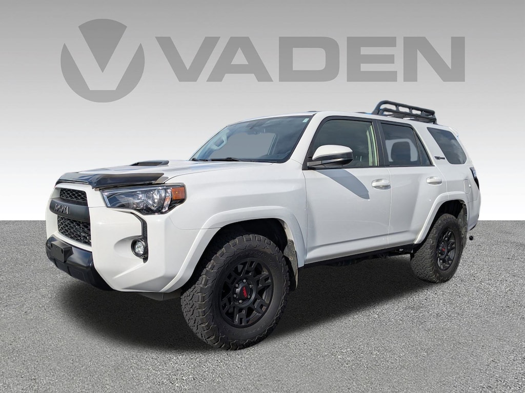 Vaden is pleased to offer this Super White 2019 Toyota 4Runner TRD Pro with Black Graphite Leather... Beautifully equipped with 4WD, Black Graphite w/Nightshade Leather Seat Trim, ABS brakes, Alloy wheels, Compass, Electronic Stability Control, Heated door mirrors, Heated Front Bucket Seats, Heated front seats, Illuminated entry, Low tire pressure warning, Power moonroof, Power Tilt & Slide Moonroof w/Sunshade, Remote keyless entry, Traction control, 3.727 Axle Ratio, 4-Wheel Disc Brakes, 8 Speakers, Air Conditioning, AM/FM radio: SiriusXM, Anti-whiplash front head restraints, Auto-Dimming Rear-View Mirror, Auto-dimming Rear-View mirror, Brake assist, Bumpers: body-color, CD player, Driver door bin, Driver vanity mirror, Dual front impact airbags, Dual front side impact airbags, Emergency communication system: Safety Connect, Exterior Parking Camera Rear, Front anti-roll bar, Front Bucket Seats, Front Center Armrest, Front fog lights, Front reading lights, Front wheel independent suspension, Garage Door Opener, Garage door transmitter: HomeLink, Knee airbag, Leather Shift Knob, Occupant sensing airbag, Outside temperature display, Overhead airbag, Overhead console, Panic alarm, Passenger door bin, Passenger vanity mirror, Power door mirrors, Power driver seat, Power passenger seat, Power steering, Power windows, Radio: Entune Premium Audio w/Navigation, Rear anti-roll bar, Rear seat center armrest, Rear window defroster, Rear window wiper, Roof rack, Security system, Softex Synthetic Leather Seat Trim, Speed control, Speed-sensing steering, Split folding rear seat, Spoiler, Steering wheel mounted audio controls, Tachometer, Telescoping steering wheel, Tilt steering wheel, TRD Badging, TRD Pro Floor Mats, TRD Pro Shift Knob, TRD Suspension Kit, Trip computer, Turn signal indicator mirrors, Variably intermittent wipers, and Wheels: TRD 17" Matte Black Alloy! Approved customer communicated additions (repairing minor cosmetic flaw, added accessories, etc.) Prior to delivery will be subject to additional charges. ***All of Our Vaden New Car Pricing is Transparent, the price you see is the price you pay!!**** 4WD, Black Graphite w/Nightshade Leather Seat Trim, ABS brakes, Alloy wheels, Compass, Electronic Stability Control, Heated door mirrors, Heated Front Bucket Seats, Heated front seats, Illuminated entry, Low tire pressure warning, Power moonroof, Power Tilt & Slide Moonroof w/Sunshade, Remote keyless entry, Traction control.