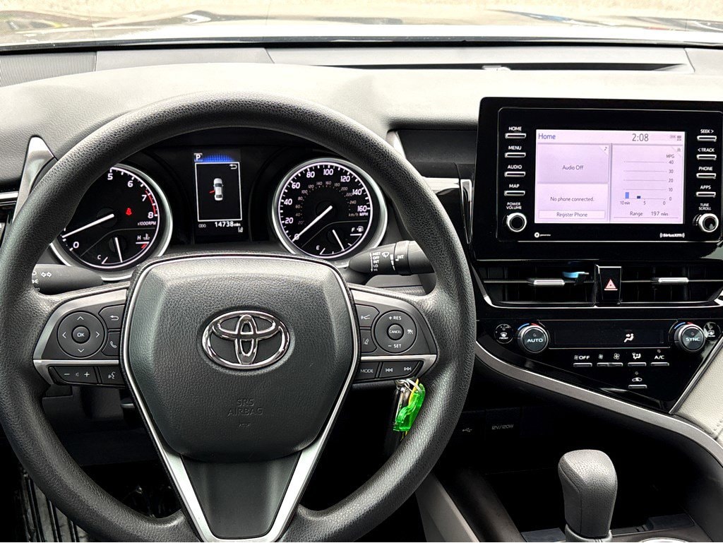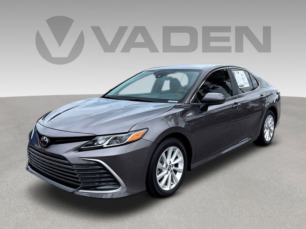 Vaden LE in Gray, Beautifully equipped with Cloth, 4-Wheel Disc Brakes, 6 Speakers, ABS brakes, Air Conditioning, Alloy wheels, AM/FM radio: SiriusXM, Apple CarPlay/Android Auto, Auto High-beam Headlights, Automatic temperature control, Brake assist, Bumpers: body-color, Delay-off headlights, Driver door bin, Driver vanity mirror, Dual front impact airbags, Dual front side impact airbags, Electronic Stability Control, Emergency communication system: Safety Connect (1-year trial), Exterior Parking Camera Rear, Fabric Seat Trim, Four wheel independent suspension, Front anti-roll bar, Front Bucket Seats, Front Center Armrest, Front dual zone A/C, Front reading lights, Fully automatic headlights, Illuminated entry, Knee airbag, Low tire pressure warning, Occupant sensing airbag, Outside temperature display, Overhead airbag, Overhead console, Panic alarm, Passenger door bin, Passenger vanity mirror, Power door mirrors, Power driver seat, Power steering, Power windows, Radio data system, Radio: Audio, Rear anti-roll bar, Rear seat center armrest, Rear side impact airbag, Rear window defroster, Remote keyless entry, Security system, Speed control, Speed-sensing steering, Split folding rear seat, Steering wheel mounted audio controls, Tachometer, Telescoping steering wheel, Tilt steering wheel, Traction control, Trip computer, Variably intermittent wipers, and Wheels: 17' x 7.5J Alloy! Cloth. Clean CARFAX. 2024 Toyota Camry LE.